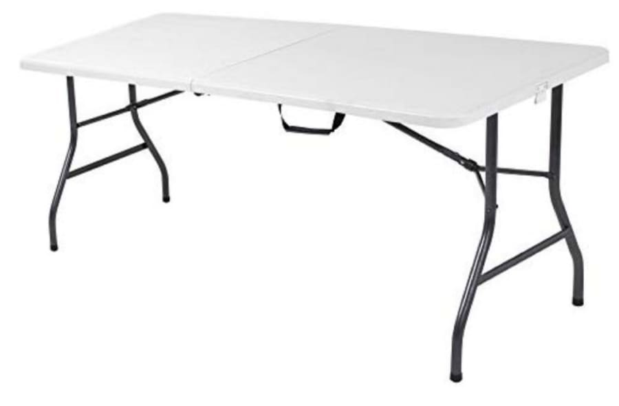 6ft rectangular tables. We have tables that can fold in half if you are picking them up at our place. we deliver tables and chairs with inflatable rentals only. if you need tables and chairs only they are customer pickup unless quantity is over $300 then we can deliver for an additional fee. Call or Text with any questions.